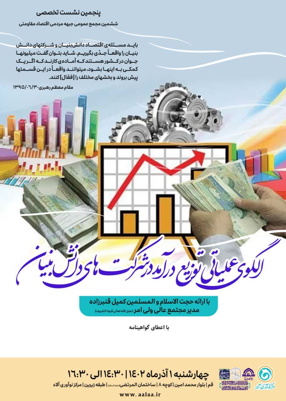 با همکاری مشترک: مجتمع عالی ولی امر، پژوهشگاه فقه نظام و مرکز نوآوری آلاء برگزار میشود:الگوی عملیاتی توزیع درآمد در شرکتهای دانشبنیان